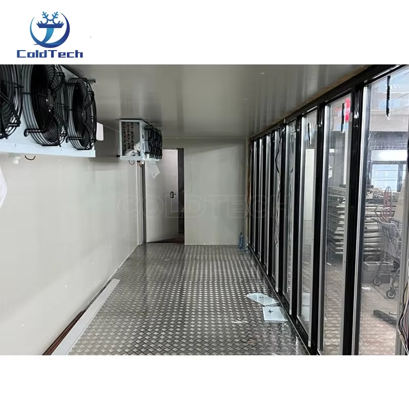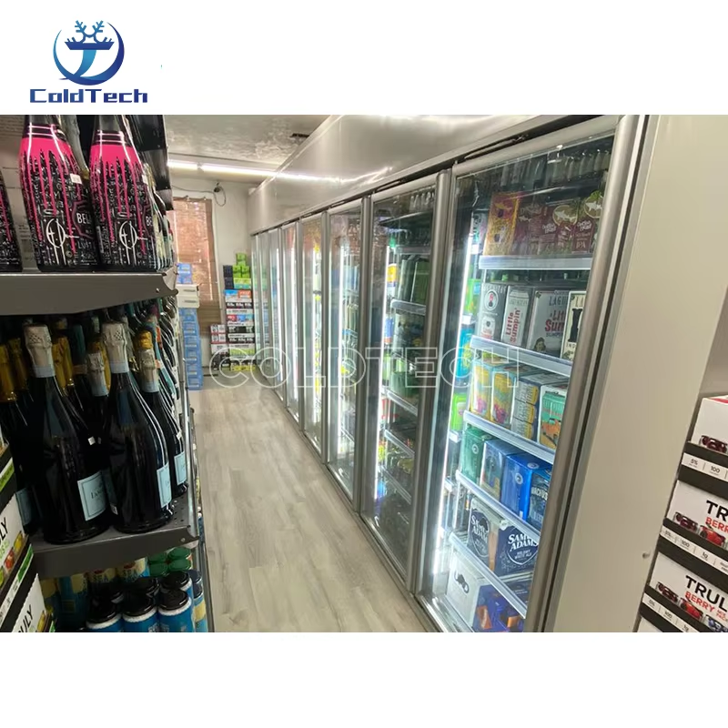 ห้องเย็นสำหรับเดินในตู้แช่แข็งพร้อมประตูกระจกสำหรับซูเปอร์มาร์เก็ต