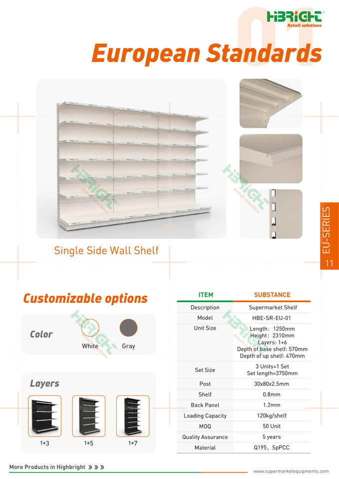 ชั้นวางสินค้าซุปเปอร์มาร์เก็ตแบบตัวแอล ทำจากไม้ แข็งแรง ทนทาน พร้อมราวป้องกันสีเทา รับน้ำหนักได้ 100 กก. สำหรับซุปเปอร์มาร์เก็ตและร้านสะดวกซื้อ
