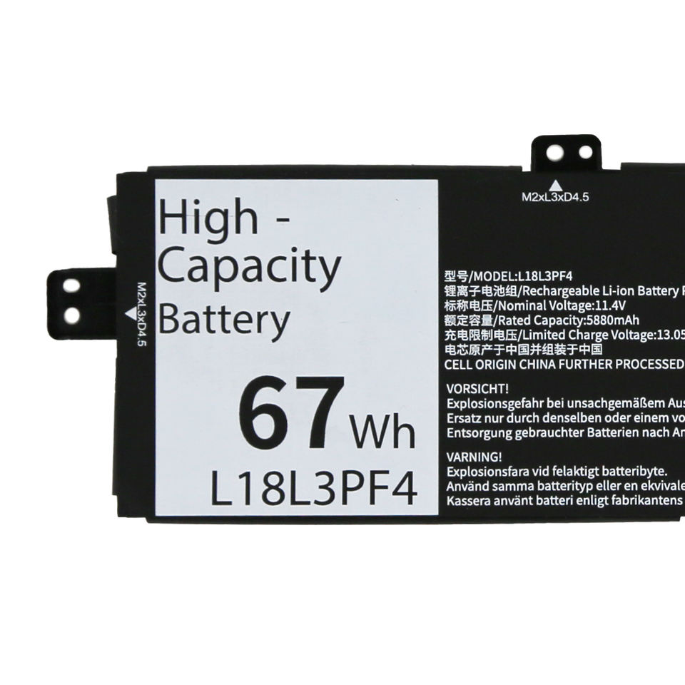 แบตเตอรี่แล็ปท็อปทดแทน L18L3PF4 L18M3PF8 67Wh เกรด A สำหรับ Ideapad S540-15IW แบตเตอรี่ลิเธียมไอออนแบบชาร์จได้