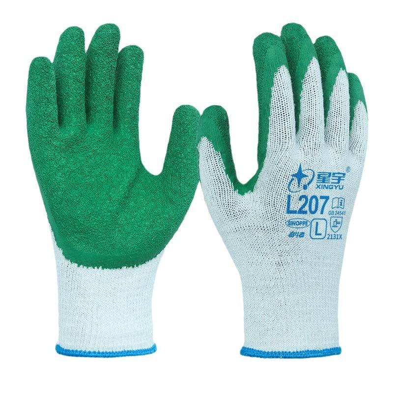 ถุงมือทำงาน L207 ถุงมือผ้าฝ้ายเคลือบยางลาเท็กซ์ ลายเกล็ดปลา ทนต่อการเสียดสี ถุงมืออเนกประสงค์เพื่อความปลอดภัย