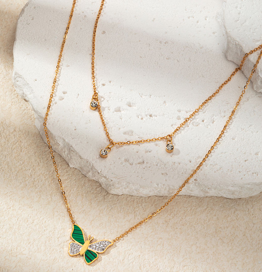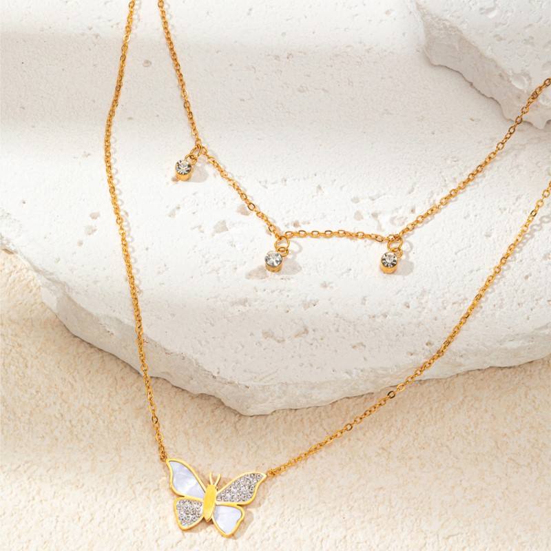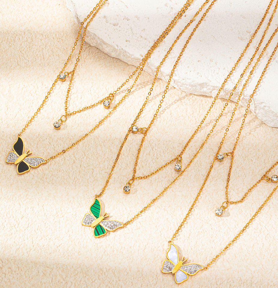 สร้อยคอจี้รูปผีเสื้อประดับมอยส์ซาไนต์สแตนเลสสตีล L316 ดีไซน์สวยงามประณีต พร้อมพู่ห้อยสองชั้นสำหรับผู้หญิง