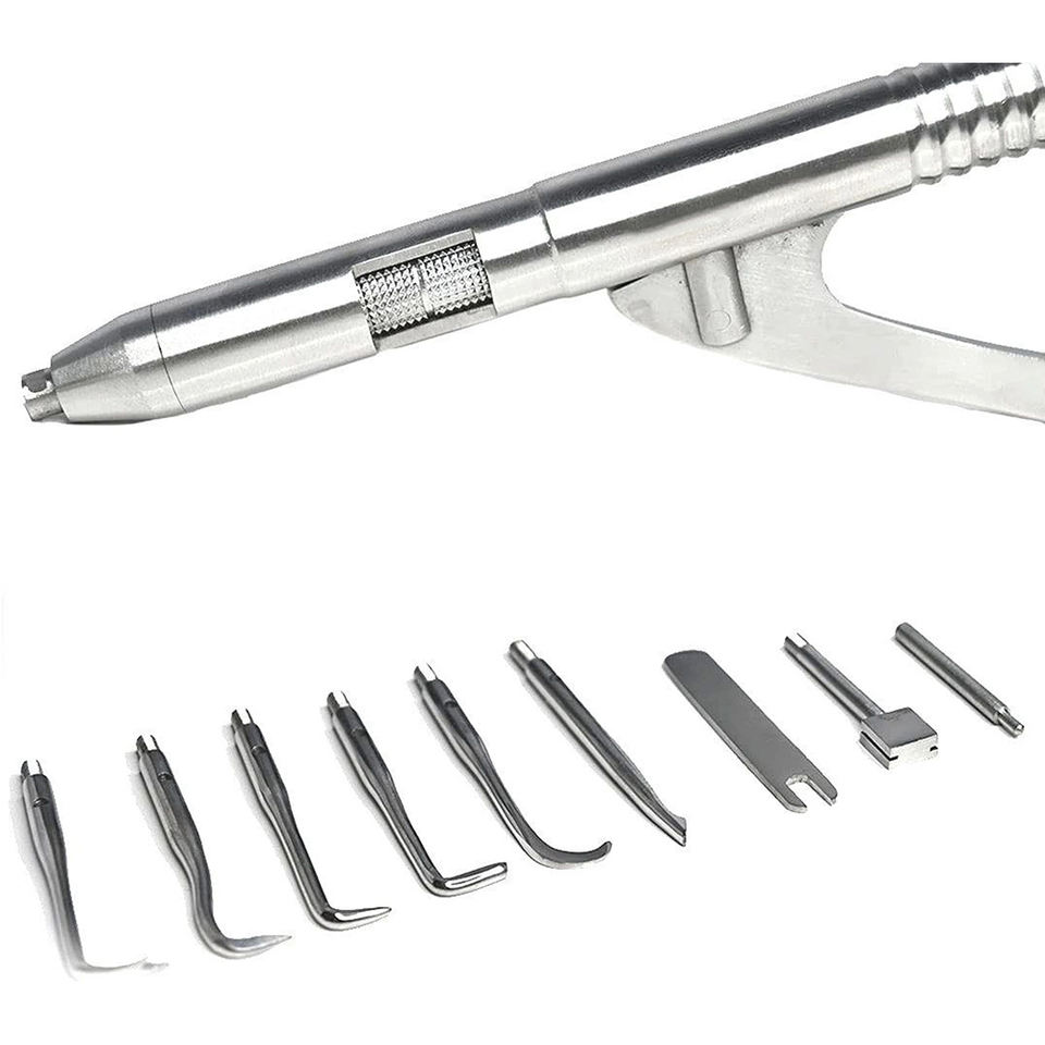 ชุดเครื่องมือถอดครอบฟันและสะพานฟัน LA ELAHI แบบแมนนวล ผลิตจากสแตนเลส ได้รับการรับรองมาตรฐาน CE พร้อมชุดหัวแบบปืน 9 ชิ้น รุ่น 2026