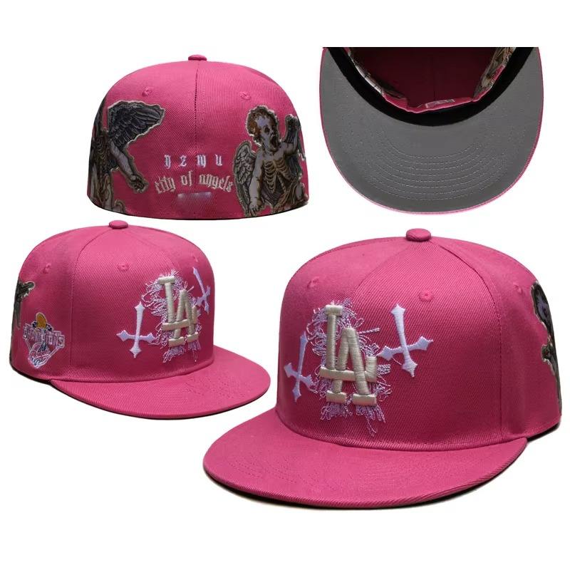 หมวกแก๊ปปักลาย LA ปีกแบนแบบ Snapback หมวกเบสบอลปักโลโก้ตามสั่ง ลายกางเขนแบบกอธิค ลายนางฟ้า สไตล์สตรีทแวร์ สปอร์ต ผ้าด็อบบี้ ผลิตตามสั่ง