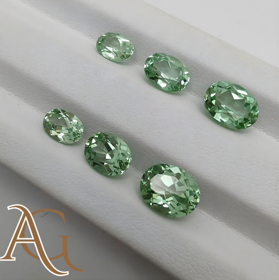 พลอยสีเขียวแซฟไฟร์ทรงรีเจียระไนแบบหลวมสำหรับทำเครื่องประดับ ผลิตจากคอรันดัม ขนาด 4x6 5x7 6x8 8x10 มม. ได้รับการรับรอง