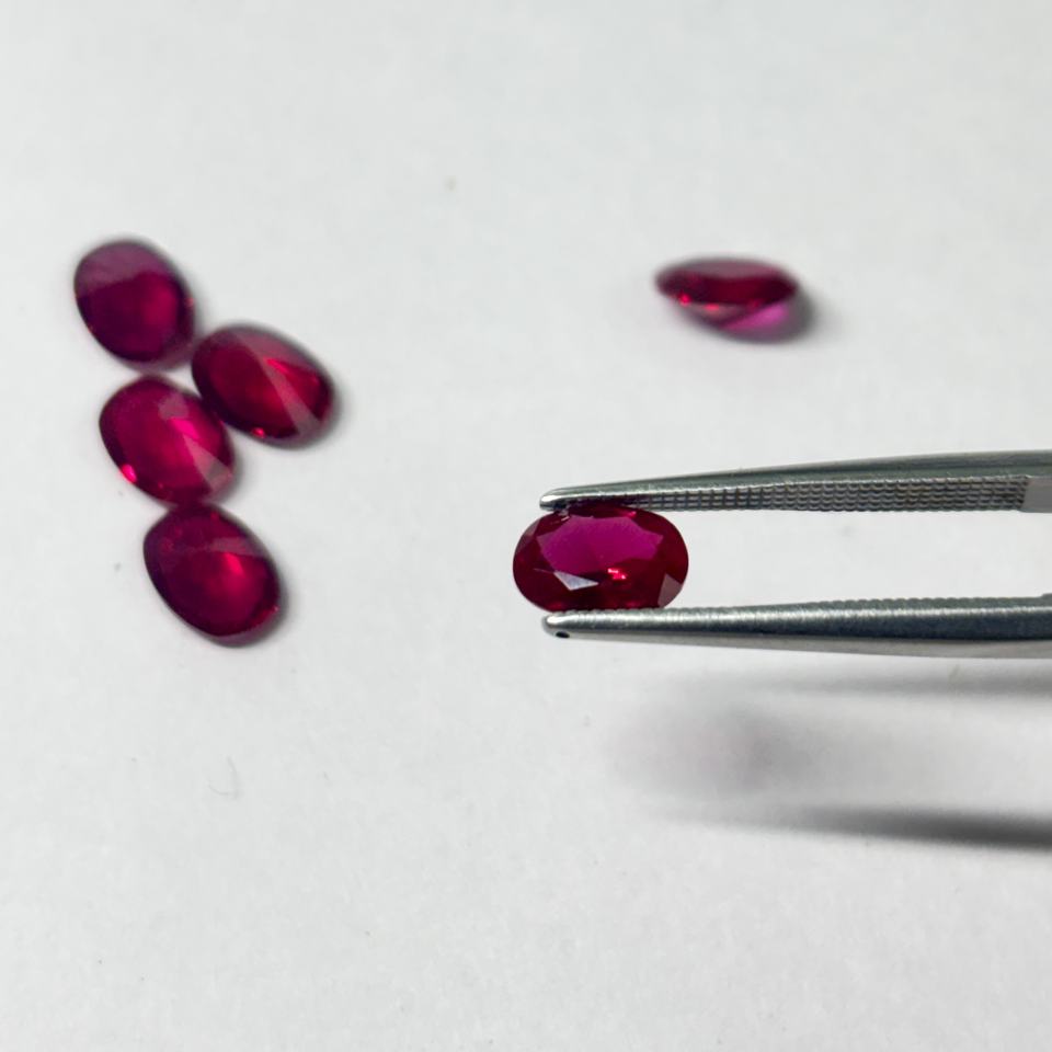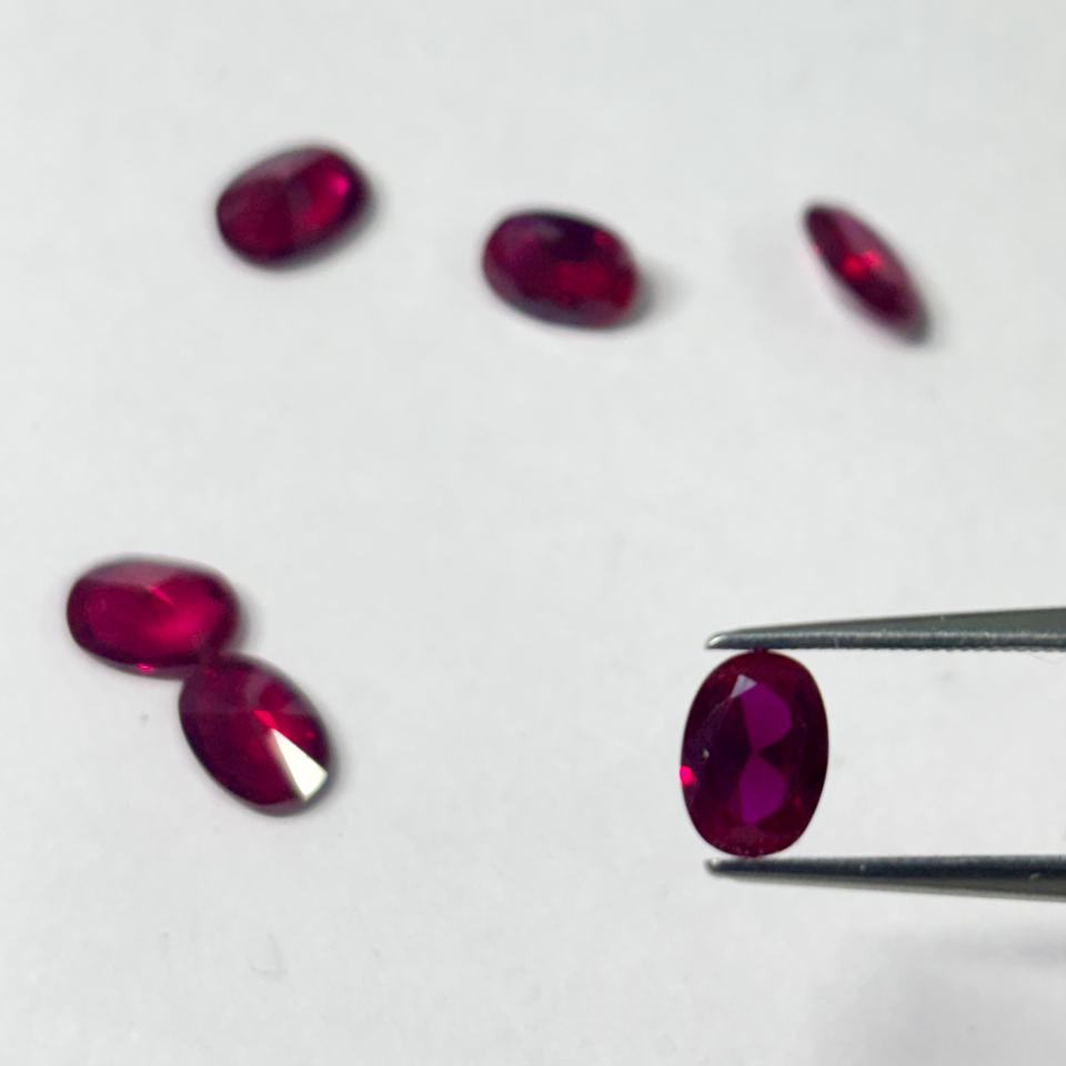 พลอยทับทิมสังเคราะห์ทรงรีเหลี่ยมเพชรพลอยสีแดงเลือดนกสำหรับทำเครื่องประดับ ทับทิมสังเคราะห์ คอรันดัม ขนาด 4x6 มม. ถึง 15x20 มม.