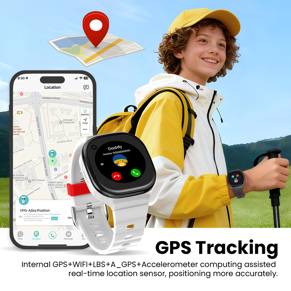 Lagenio สมาร์ทวอทช์4G สำหรับวัยรุ่น Ai, นาฬิกาอัจฉริยะมี GPS/WiFi ระบุตำแหน่งวิดีโอคอล SOS แอนดรอยด์8.1 AMOLED Display IP68อัจฉริยะกันน้ำ