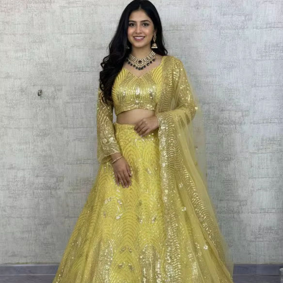 ชุดเลเฮนกาโชลีพร้อมผ้าคลุมไหล่ ผ้าเน็ตเนื้อนุ่มพรีเมียม ปักลายด้วยดิ้นและลูกปัด ผ้าแคนแคน ผ้าปาตตา ทรงหลวม สไตล์วินเทจ สีพื้น สำหรับฤดูใบไม้ร่วง