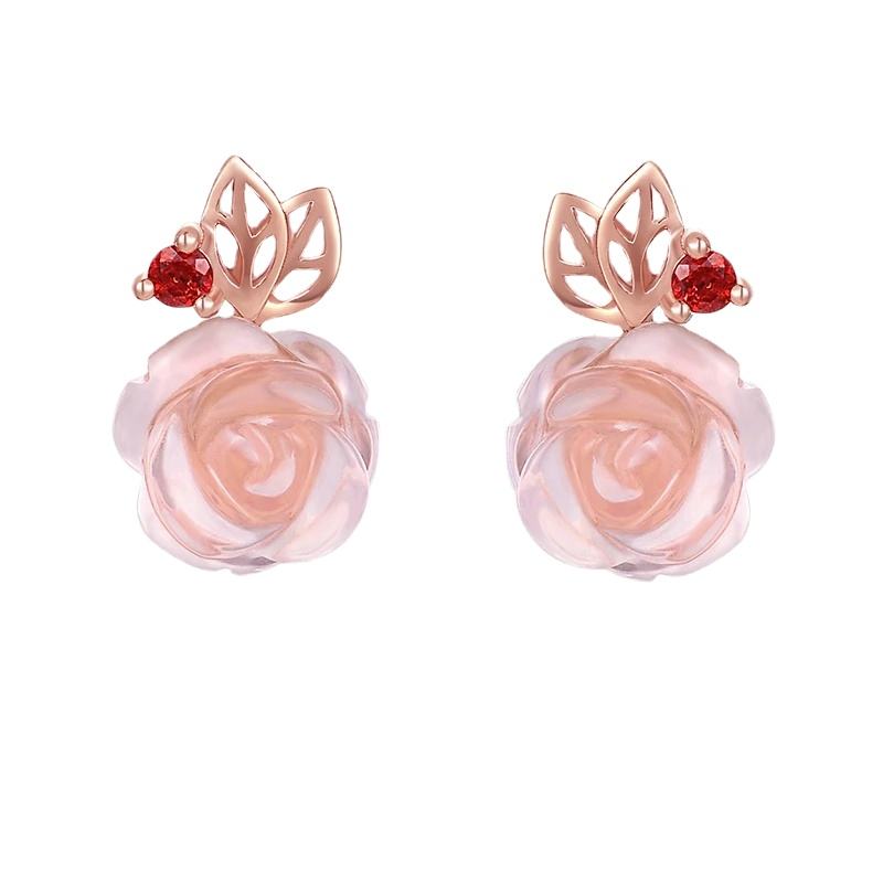 ต่างหูเงินแท้ 925 ประดับด้วยโรสควอตซ์สีชมพูธรรมชาติ รูปดอกกุหลาบ ขนาด 9 มม. ของ LAMOON เหมาะสำหรับเป็นของขวัญ