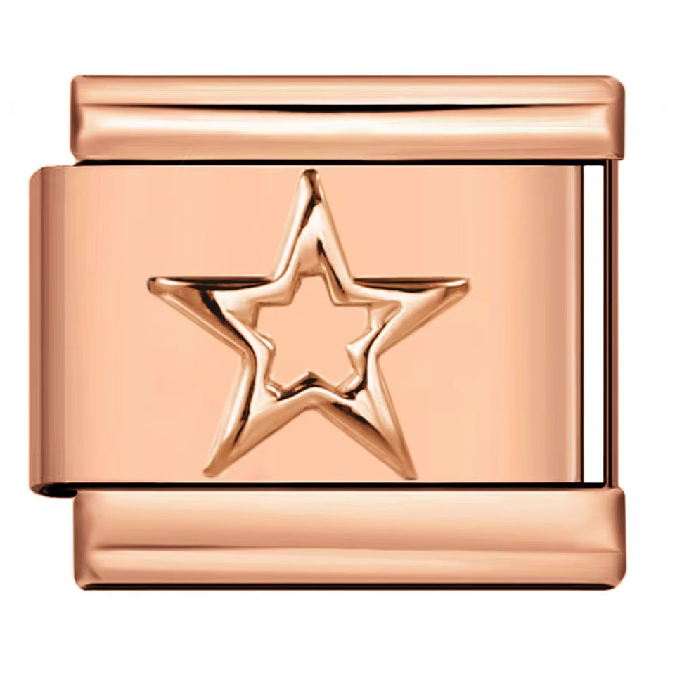 LAMOON Design 9mm Rose Gold Flower Star Cross Hearts Italian Charms Link Fit 9mm Stainless Steel DIY Jewelry Making Bracelet