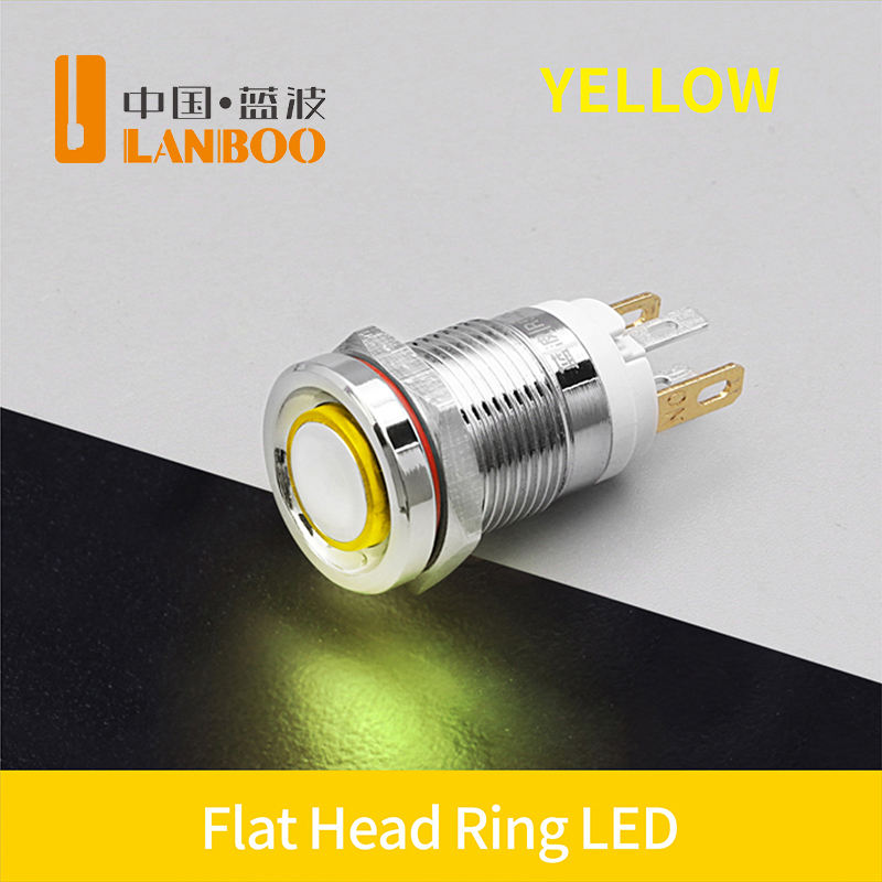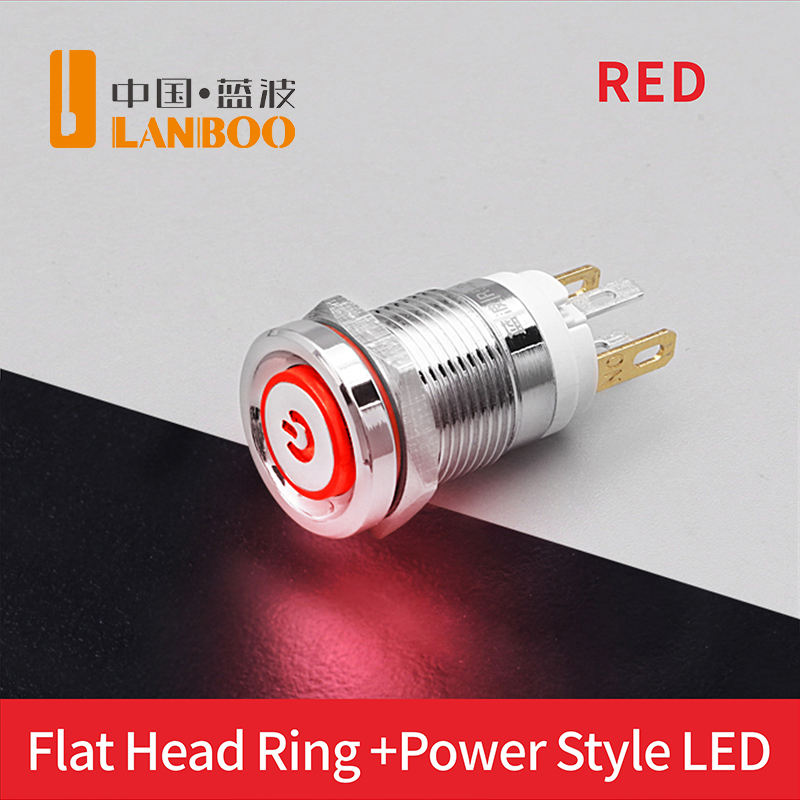 Lanboo หัว/แหวนสูง12มม. หัวแบน/สัญลักษณ์พลังงานหัวแบน/วงแหวนปุ่มกด7A สูงในปัจจุบันสลับสีแดง, สีเขียว, สีฟ้า, สีเหลือง
