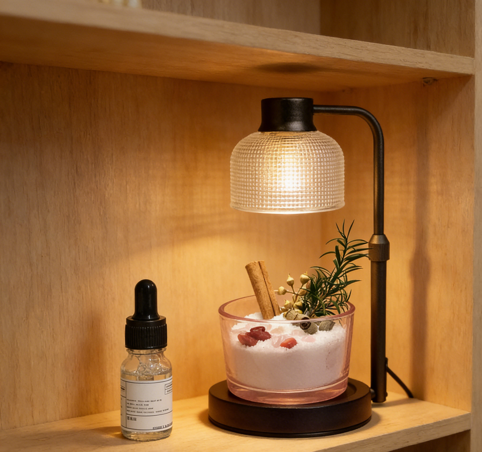 ชุดอุ่นเทียนหอม LANJO พร้อมโคมไฟและเทียนทรายในขวดแก้ว น้ำมันหอมระเหย คริสตัล และดอกไม้แห้ง