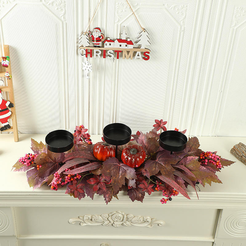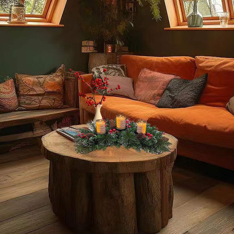 ของตกแต่งโต๊ะคริสต์มาส LANJO พร้อมโบว์สีทองประดับลูกบอลและที่วางเทียน 3 ชิ้น