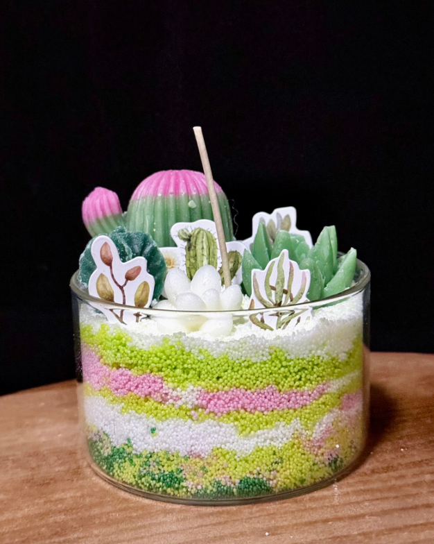 ชุดทำเทียนหอม LANJO DIY ภาพวาดทราย กลิ่นหอมจากธรรมชาติ เทียนอโรมาเธอราพีจากฝ้าย รูปทรงกระบองเพชร สำหรับงานแต่งงาน