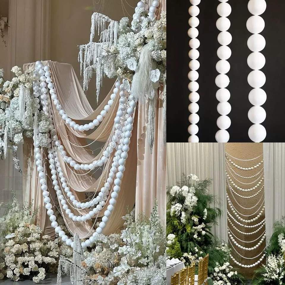 ลูกบอลโฟมประดับมุก LANJO สำหรับตกแต่งงานแต่งงาน หลายขนาด สำหรับฉากหลังงานแต่งงาน ตกแต่งเวทีกลางแจ้ง