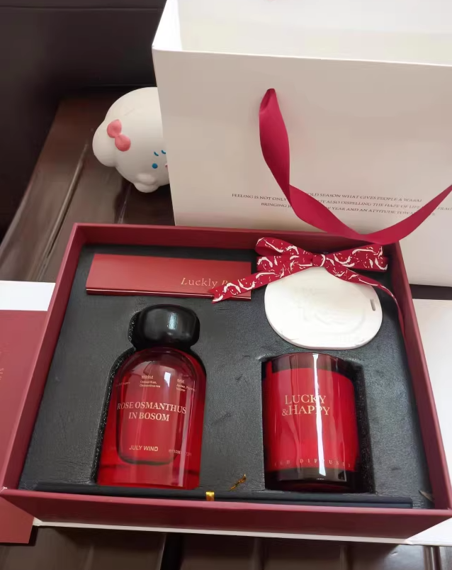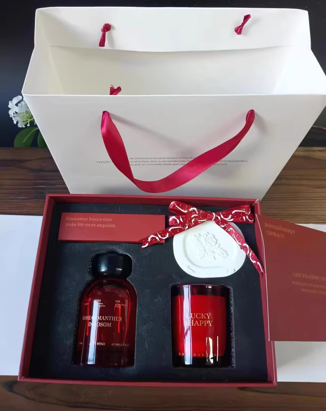 ชุดของขวัญก้านไม้หอมและเทียนหอม LANJO ระดับพรีเมียม ทำจากขี้ผึ้งถั่วเหลือง - กลิ่นหอมบำบัดรักษ์โลกสำหรับวันวาเลนไทน์และคริสต์มาส