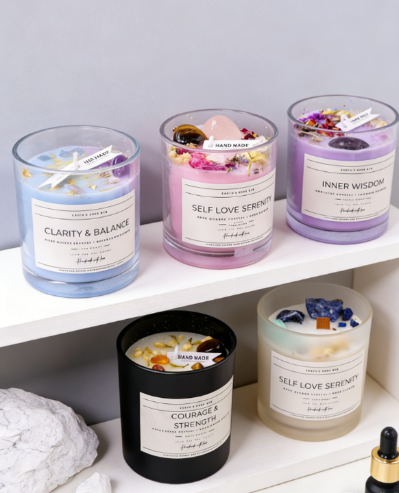 เทียนหอม LANJO หรูหรา กลิ่นอโรมาเธอราพี ทำจากขี้ผึ้งถั่วเหลืองในภาชนะแก้ว ประดับด้วยดอกไม้แห้งและคริสตัล สำหรับเป็นของขวัญสำหรับผู้หญิง