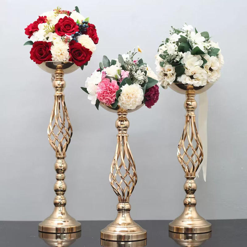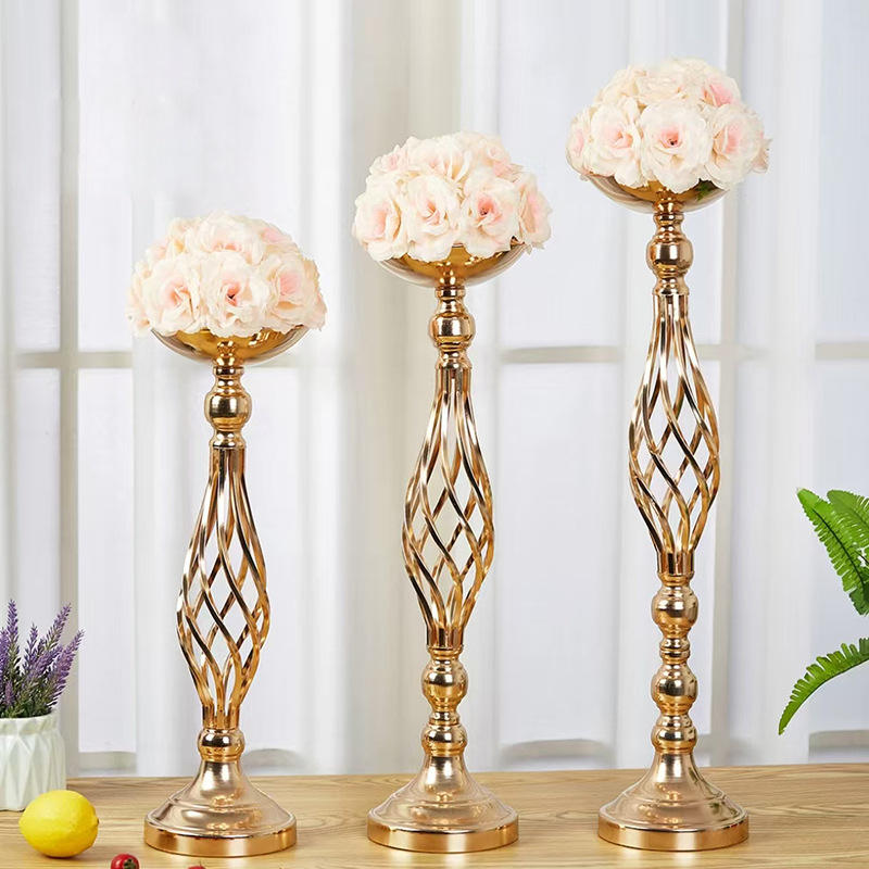 Lanjo ที่แขวนดอกไม้เหล็กสีทองหรูหราหรูหราที่วางกลางถนนที่ทำจากโลหะของตกแต่งงานแต่งงานชั้นสูงที่วางดอกไม้