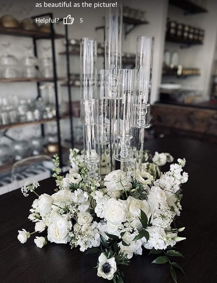 เชิงเทียนอะคริลิคใสทรงสูง 5/8 แขน ยี่ห้อ LANJO คุณภาพสูง ดีไซน์ทันสมัย พร้อมแจกันทรงหลอดคริสตัล สำหรับงานแต่งงาน