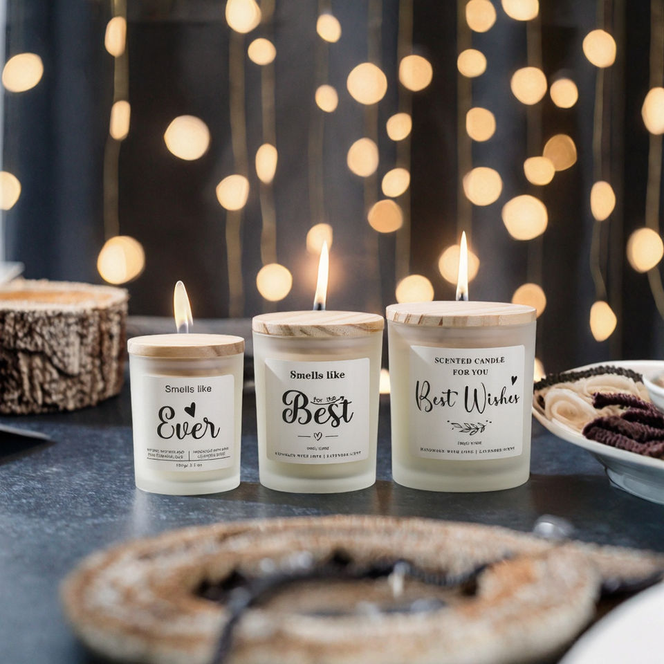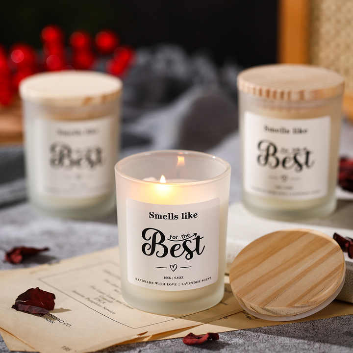 เทียนหอม LANJO กลิ่นโซยวา็กซ์ในขวดแก้วฝาไม้ สำหรับตกแต่งบ้าน วันฮาโลวีน คริสต์มาส วันวาเลนไทน์ วันดิวาลี