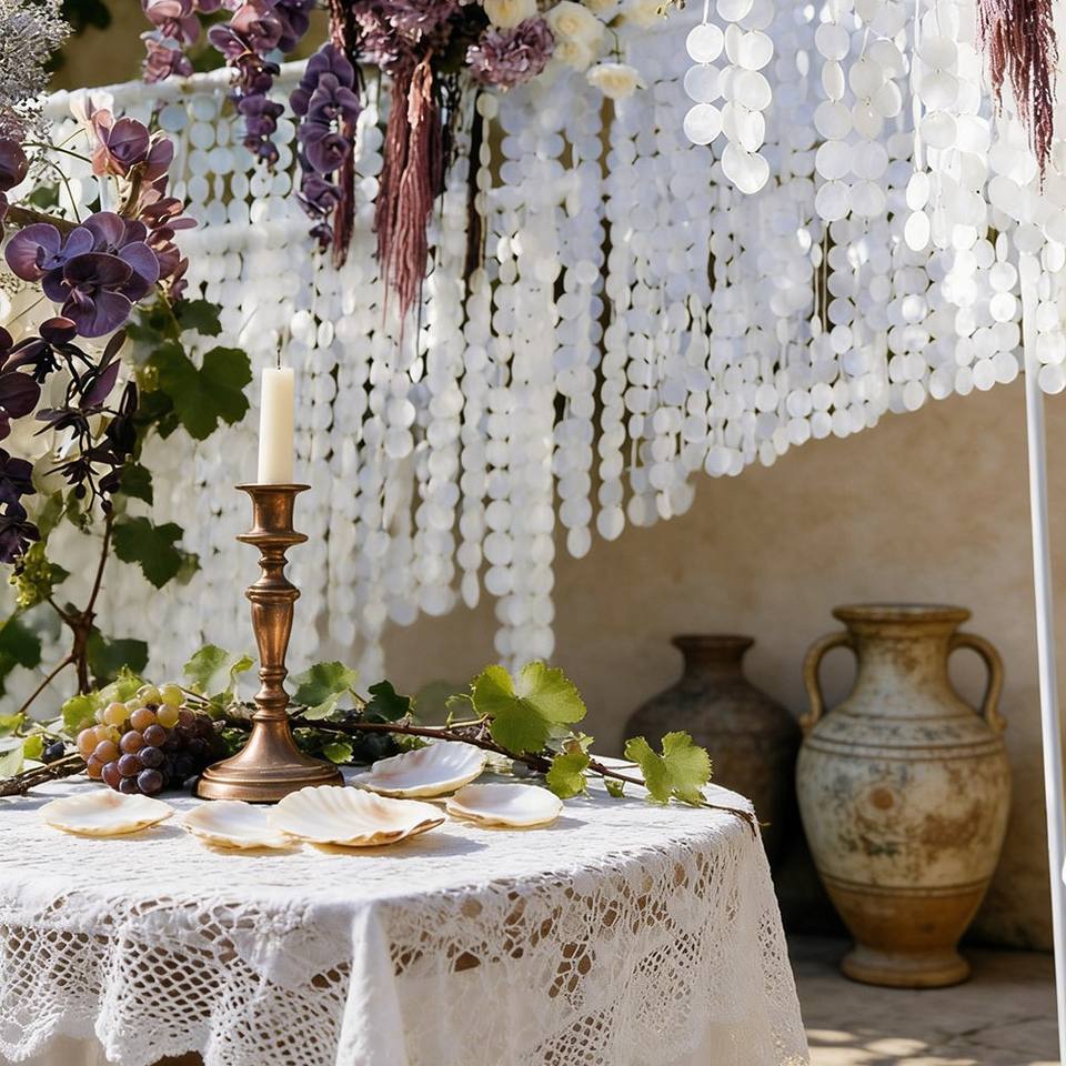แผ่นเปลือกหอยมิก้า LANJO สำหรับตกแต่งเวทีงานแต่งงาน ขนาด 5 ซม. ตกแต่งเพดาน วงกลมเปลือกหอยธรรมชาติ พร้อมไฟประดับลมแบบโรแมนติก