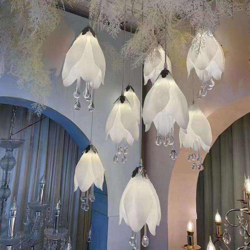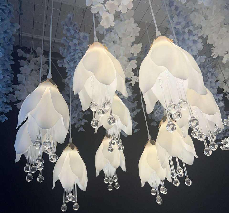 ไฟประดับเพดานงานแต่งงาน LANJO รุ่นใหม่ รูปดอกลิลลี่เรืองแสง สไตล์ป่า สำหรับตกแต่งฉากหลังเวทีงานแต่งงาน และประดับทางเข้า