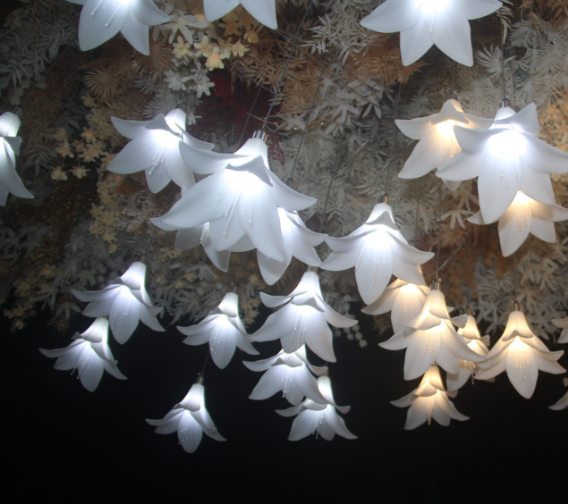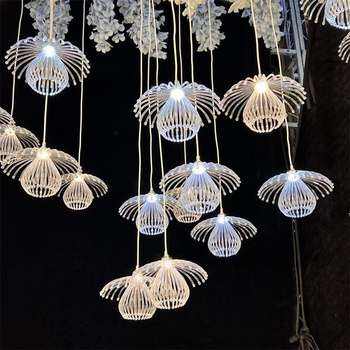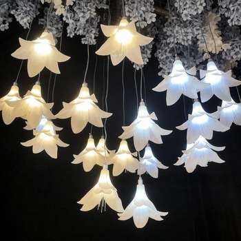 ไฟประดับเพดานงานแต่งงาน LANJO รุ่นใหม่ รูปดอกลิลลี่เรืองแสง สไตล์ป่า สำหรับตกแต่งฉากหลังเวที ทางเข้า และตกแต่งอื่นๆ ทำจากพลาสติก