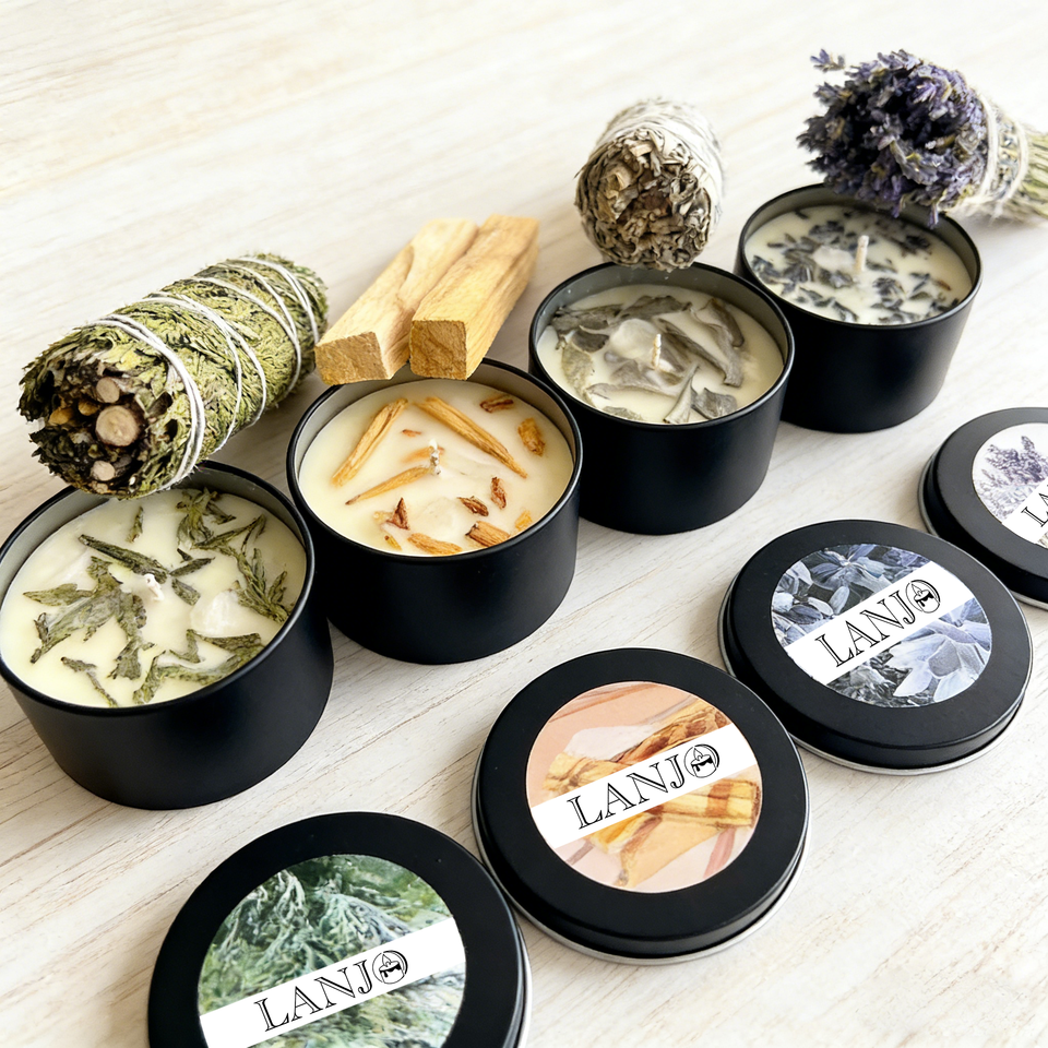 เทียนหอม LANJO ทำมือจากขี้ผึ้งถั่วเหลืองไร้ควัน สำหรับวันหยุด ช่วยปรับสมดุลพลังงาน ผ่อนคลาย และทำความสะอาดพลังงานทางจิตวิญญาณ กลิ่นไม้หอม