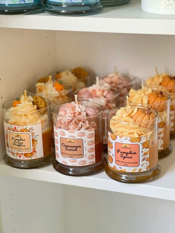 เทียนหอมแฮนด์เมด LANJO คอลเลคชั่นใบเมเปิ้ลและฟักทองสำหรับตกแต่งฮาโลวีน วันขอบคุณพระเจ้า และวันเกิด