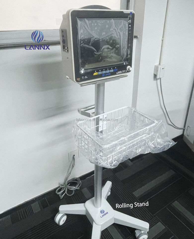LANNX รถเข็นแพทย์สต็อกดั้งเดิมพร้อมระบบรองรับด้านล่าง รถเข็นตรวจสอบผู้ป่วย กล้องเอนโดสโคปหรือสัญญาณชีพ ตรวจสอบขาตั้งแบบกลิ้ง