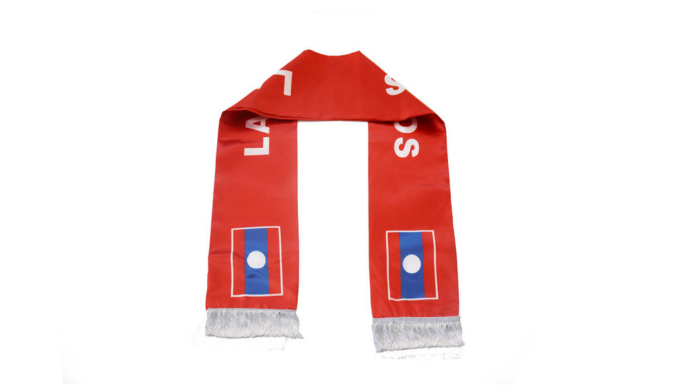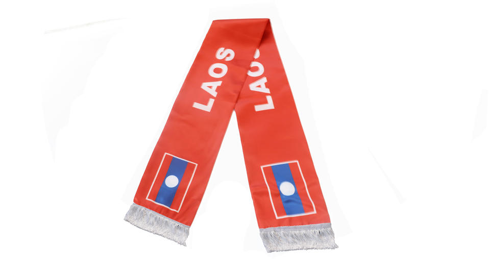 ผ้าพันคอลายธงของ Laos ผ้าพันคอผ้าพันคอผ้าพันคอผ้าพันคอลายธงประจำชาติผลิตภัณฑ์เชียร์ฟุตบอลตามสั่ง