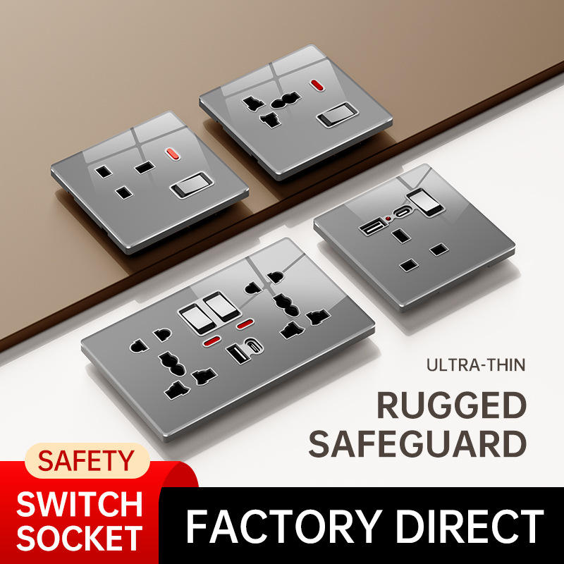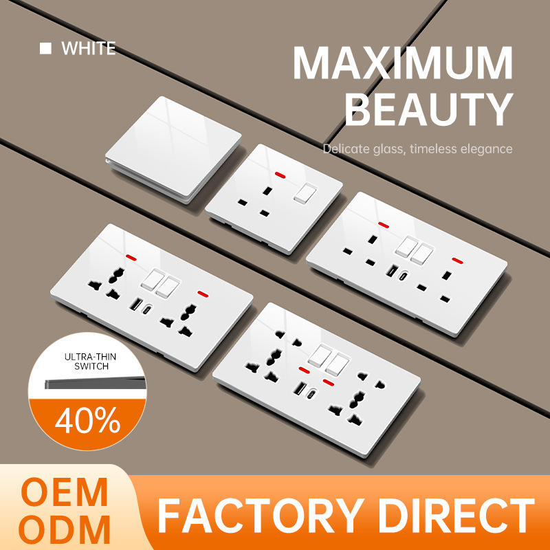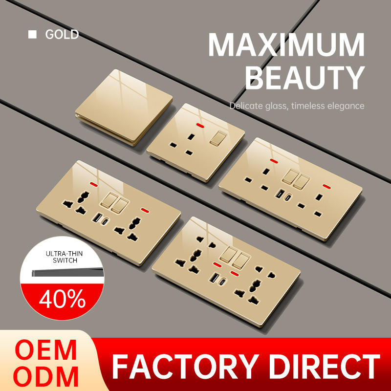 สวิตช์และเต้ารับติดผนัง LAPU Luxury กระจกนิรภัย ขนาด 86 มม. 146 มม. สีขาว ดำ เทา ทอง