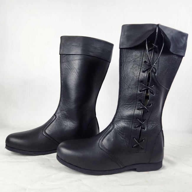 Larp Viking บูทหนังยาวใต้เข่า, ทำด้วยมือรองเท้าบูทยุคกลางนอร์สรองเท้าประวัติศาสตร์รองเท้าหนังไวกิ้ง
