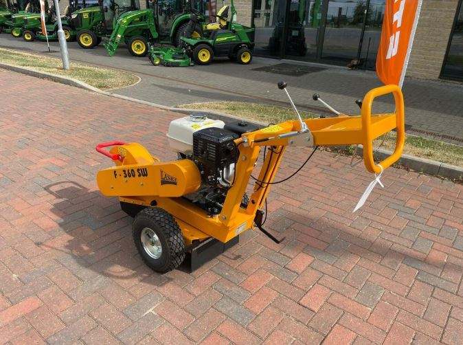 เครื่องบดตอไม้ LASKI F360SW ใช้เชื้อเพลิงเบนซิน ขนาด 14 นิ้ว พร้อมระบบแกนหมุนกลางและเกียร์เพื่อการทำงานที่ลดความเมื่อยล้า