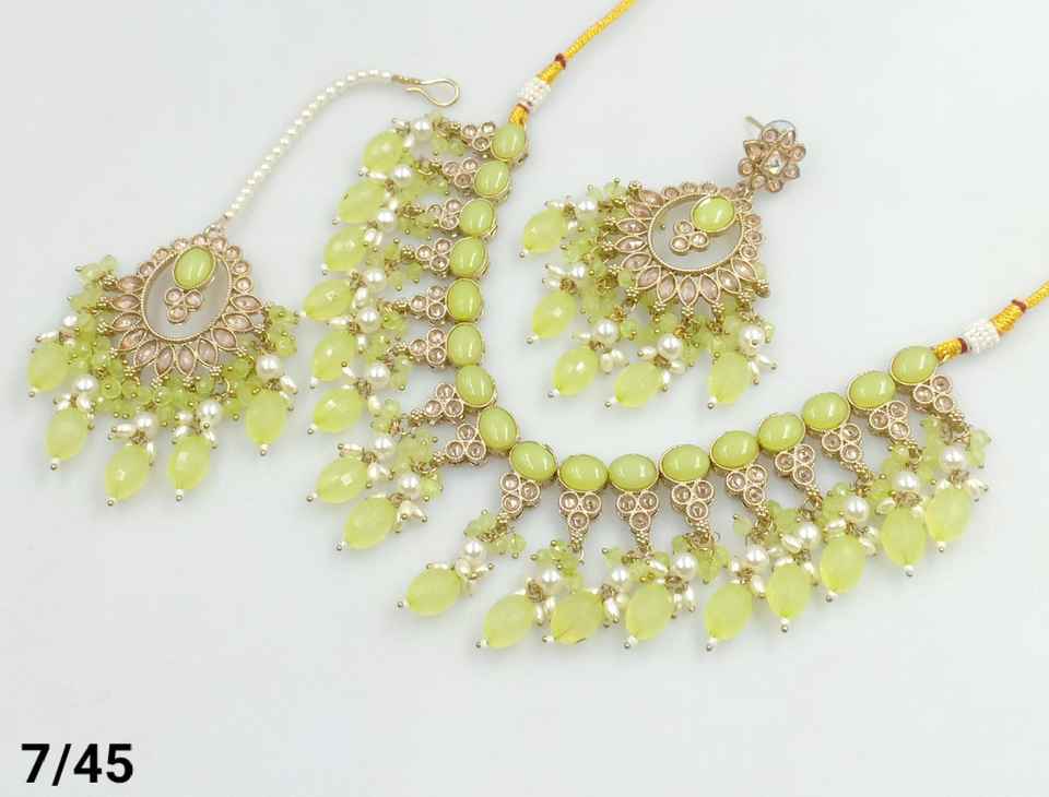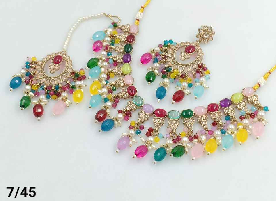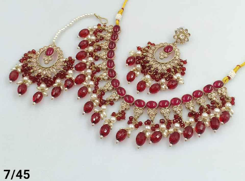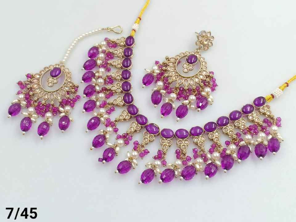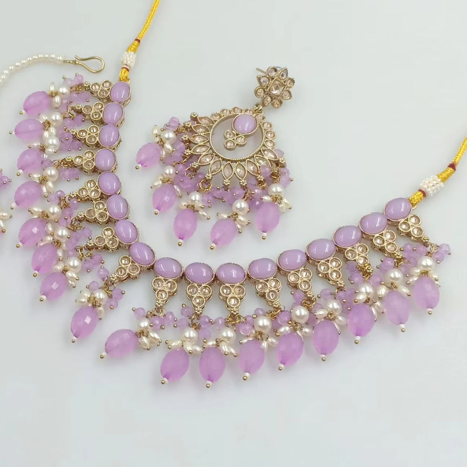 สร้อยคอโชคเกอร์แฟนซีพร้อมชุดต่างหู mangtikka และชุดเครื่องประดับสำหรับผู้หญิงล่าสุดลายมุกโบราณ