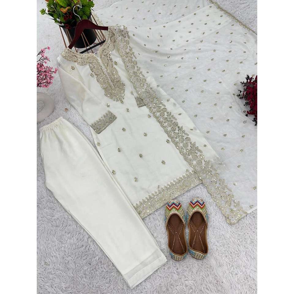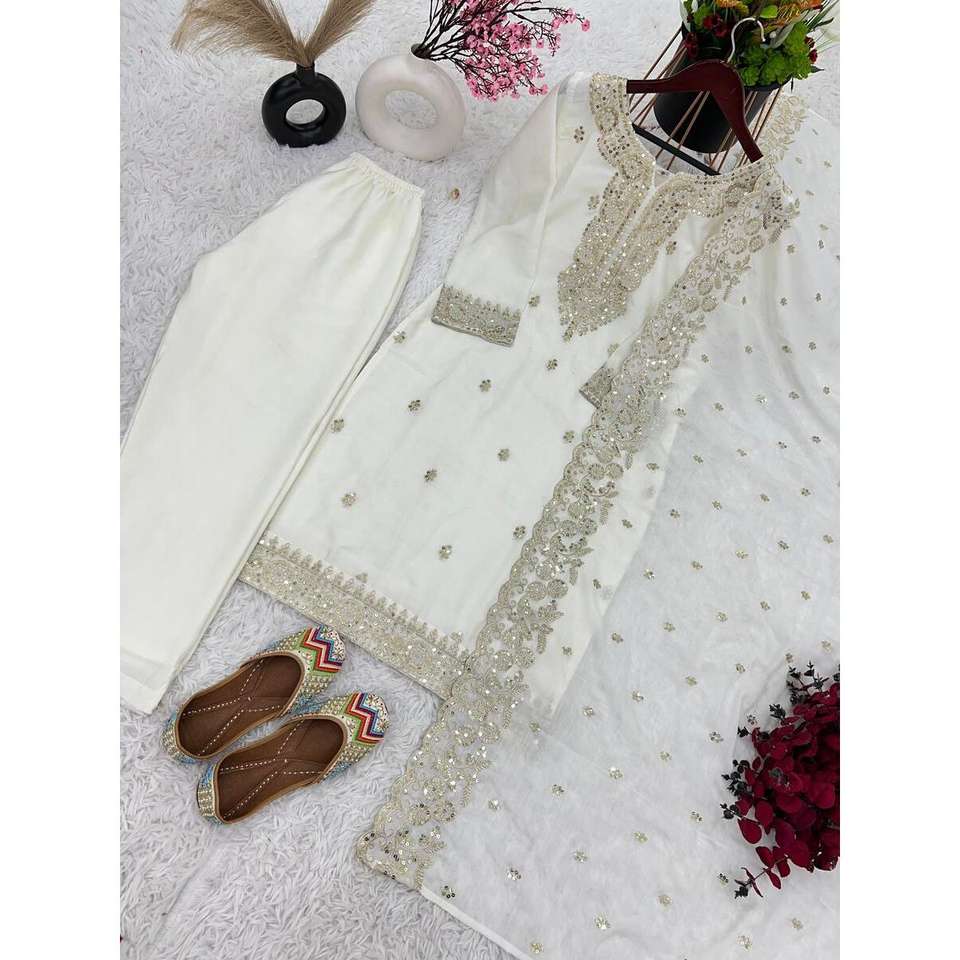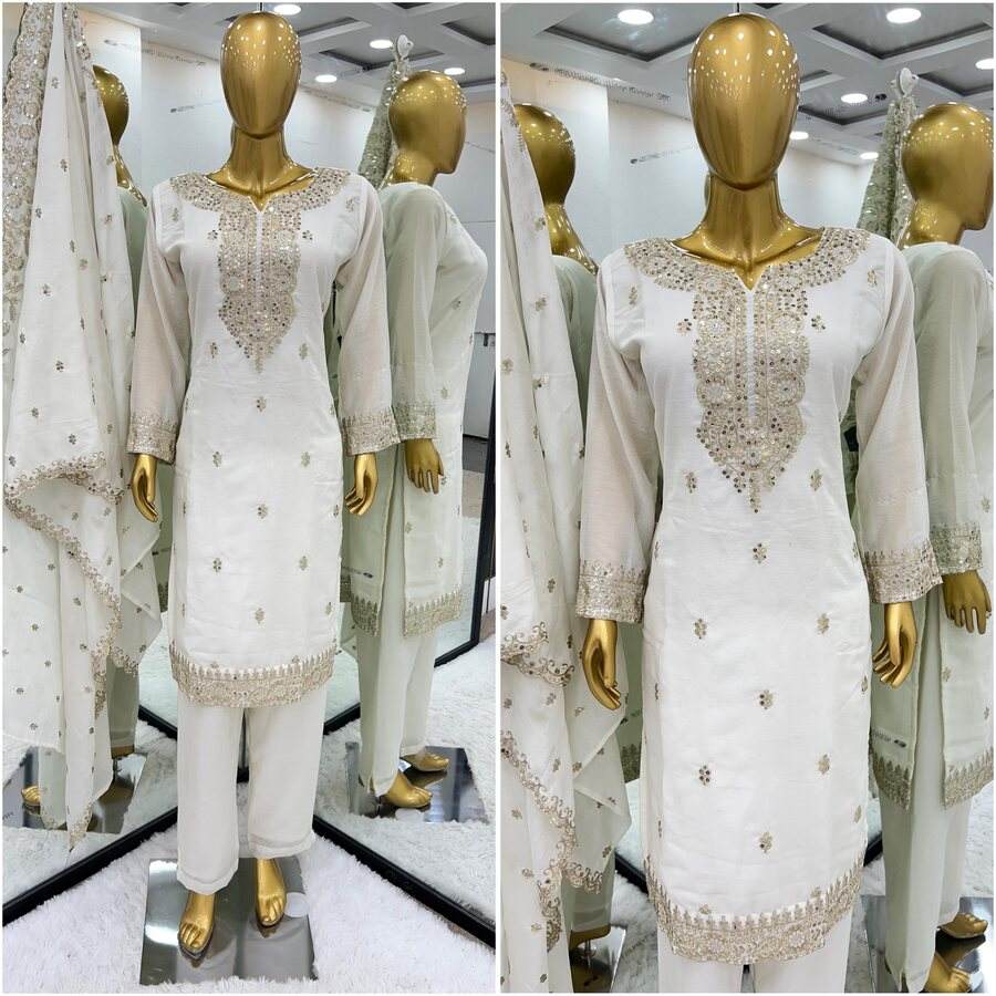 ผ้าไหมสีขาวเย็บปักลาย
