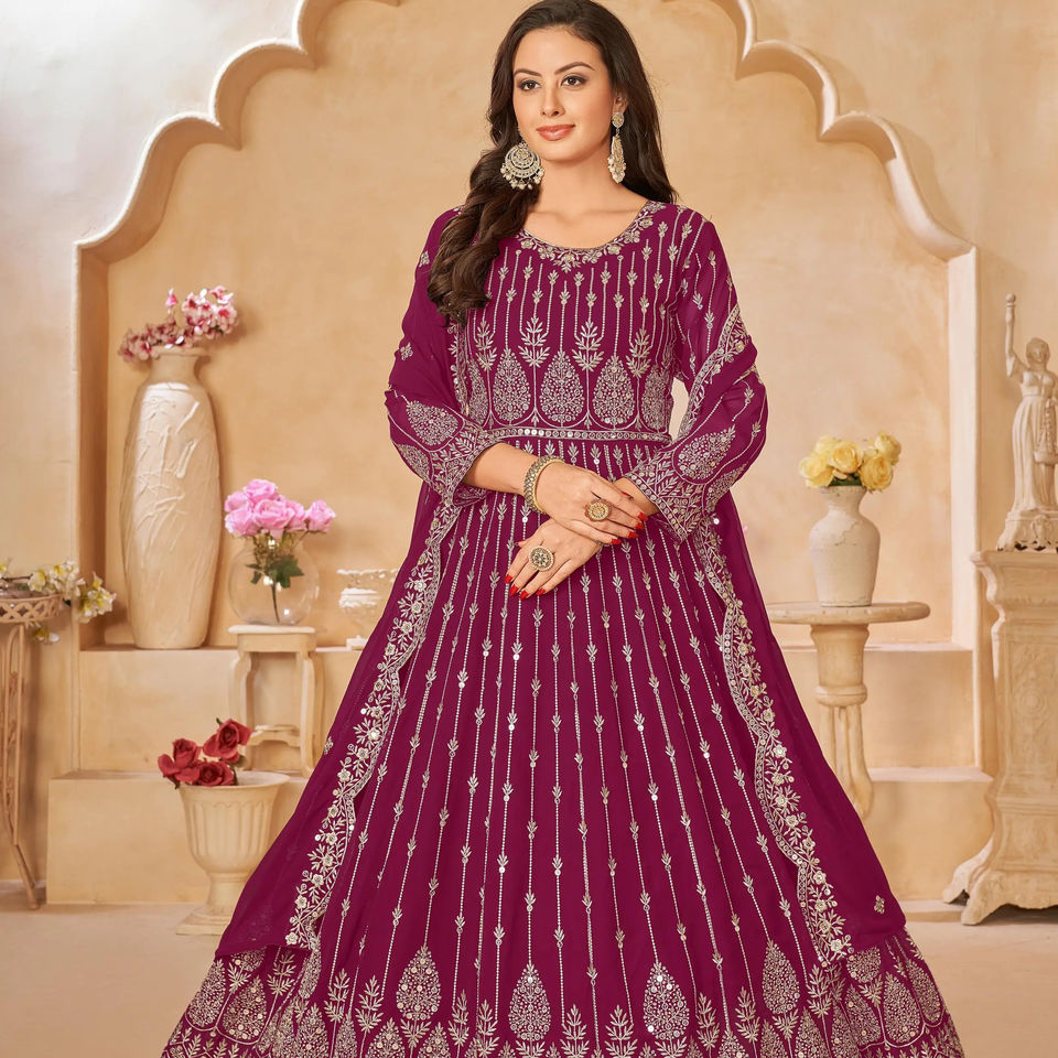 ชุดคลุม Anarkali Georgatte สังเคราะห์หนักแบบล่าสุด