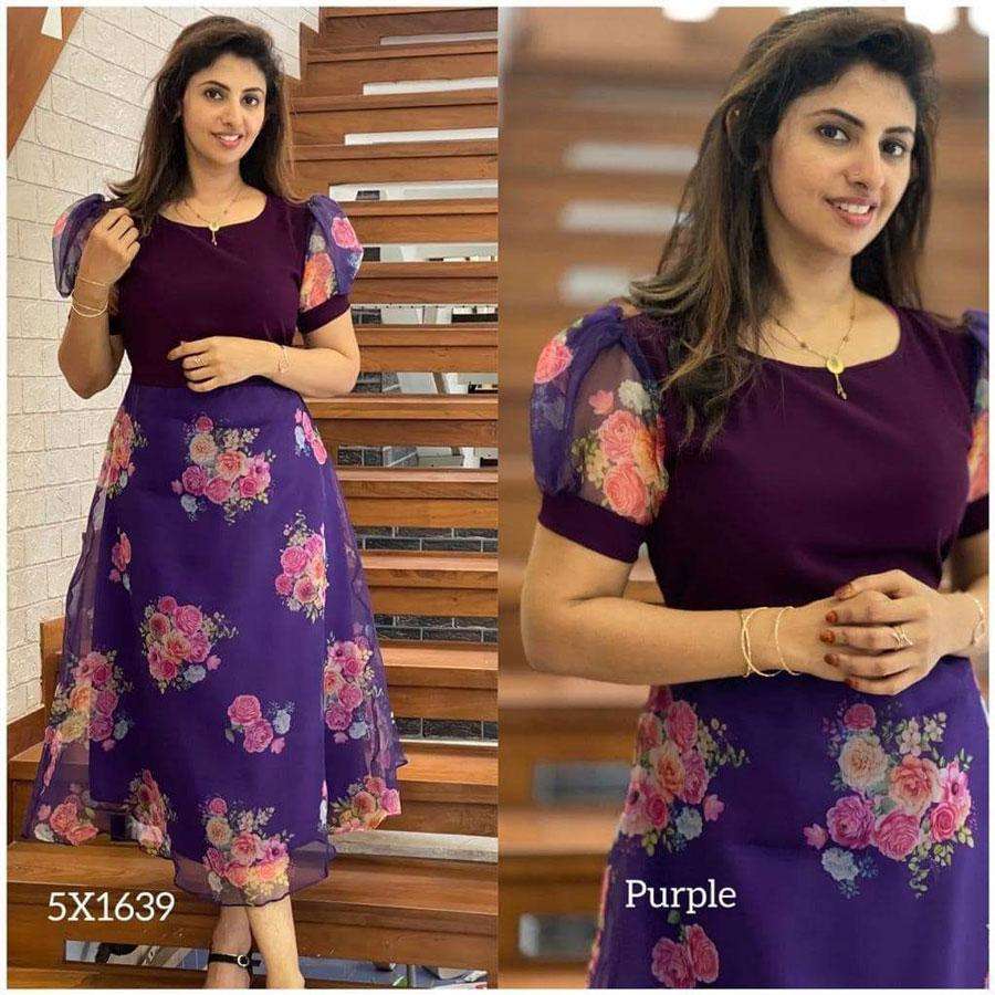 งานพิมพ์ดิจิตอล georgette ล่าสุดมีเพียงสีม่วง