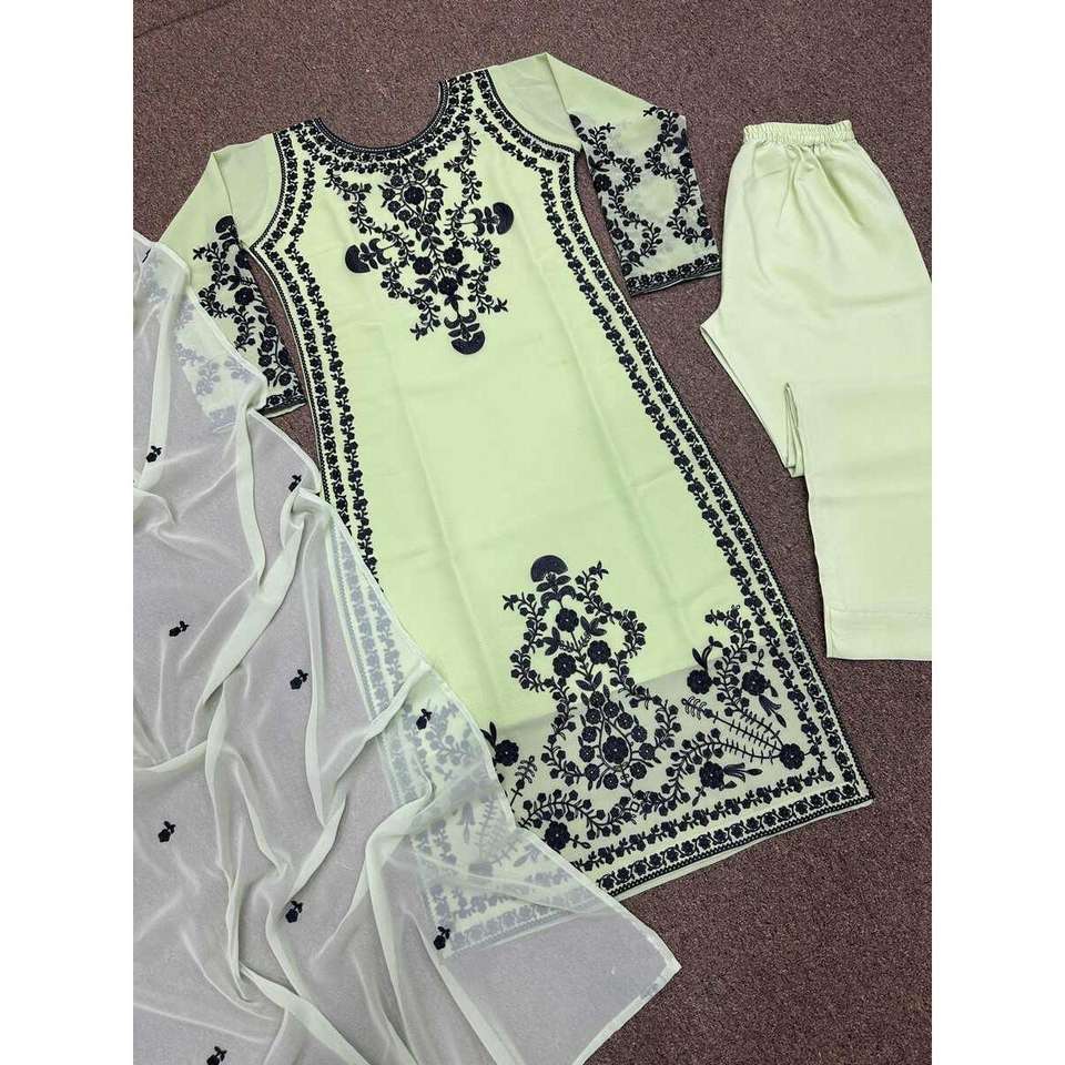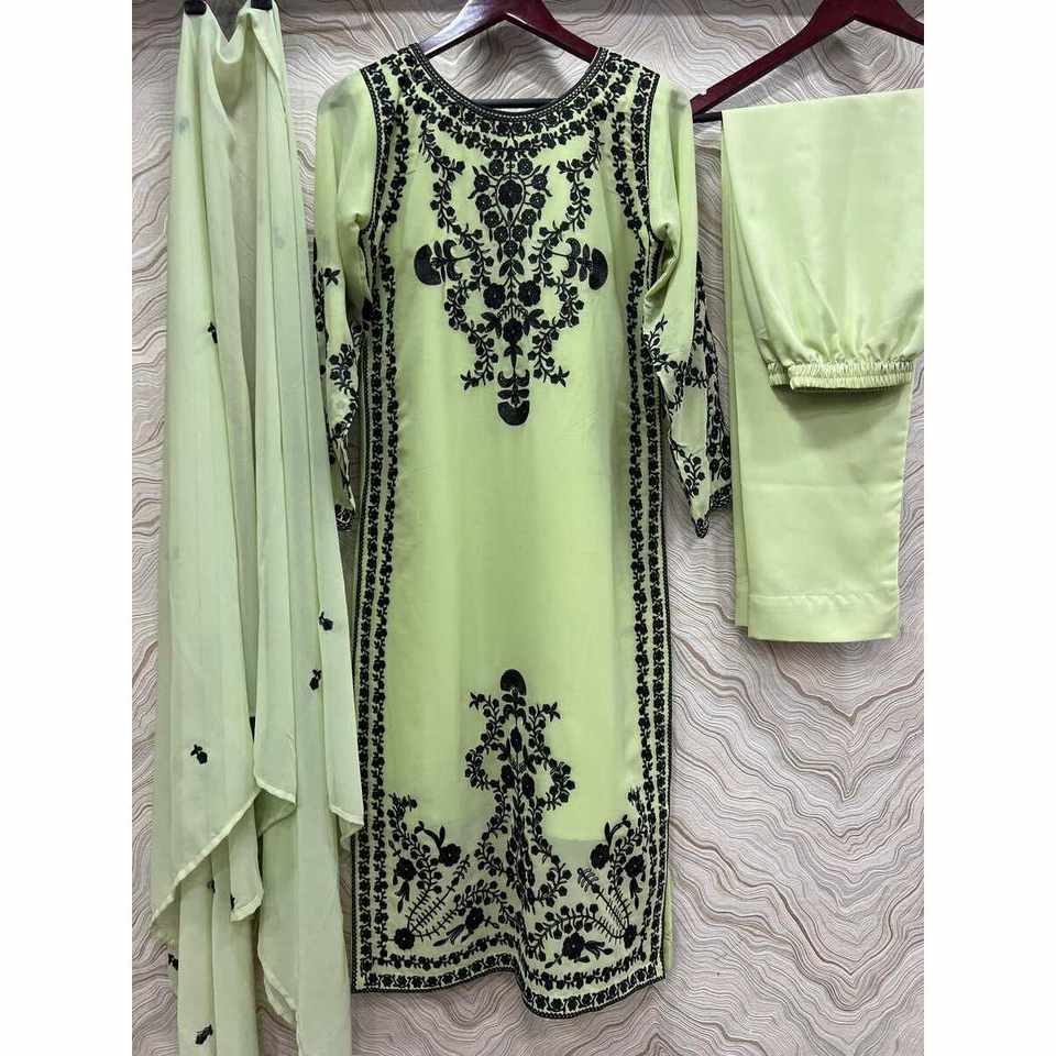 ล่าสุดผ้าจอร์เจียปักลายทำงานด้านบนด้านล่างพร้อม dupatta pista