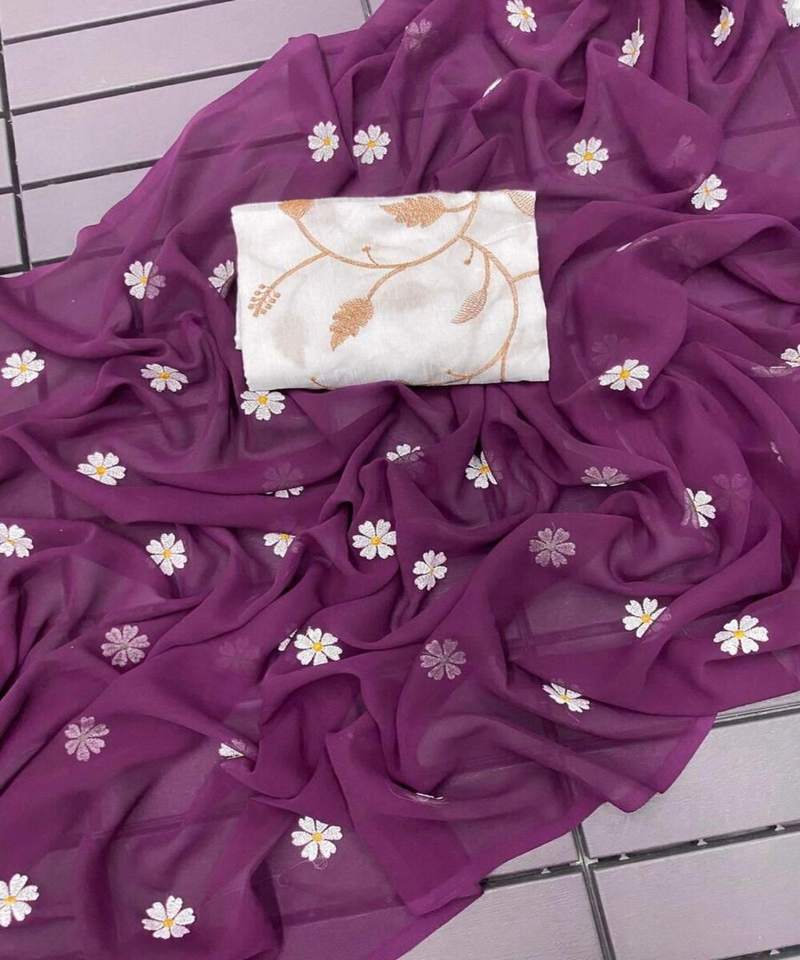 ผ้าส่าหรีงานปักผ้าเส้นใย georgette เสื้อเบลาส์แต่งตะเข็บสำหรับงานแต่งงานขายส่งเสื้อผ้าพื้นเมืองไวน์