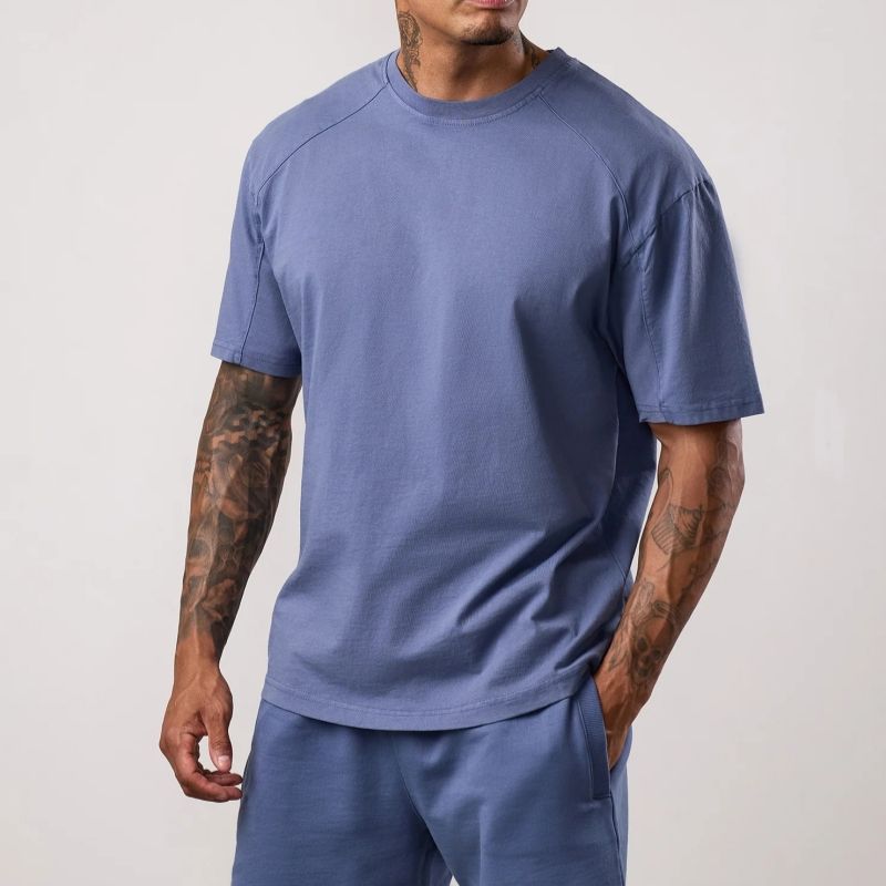 เสื้อยืดผ้าฝ้าย100% โอเวอร์ไซส์สำหรับผู้ชายเสื้อยืดโชว์ไหล่ทรงหลวมสไตล์ใหม่ล่าสุด
