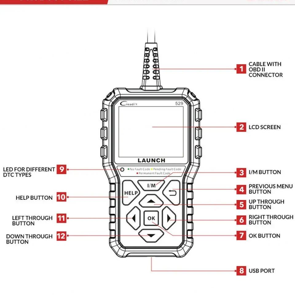 LAUNCH CR529 OBD2 Scanner with Full Function 12V Code Reader