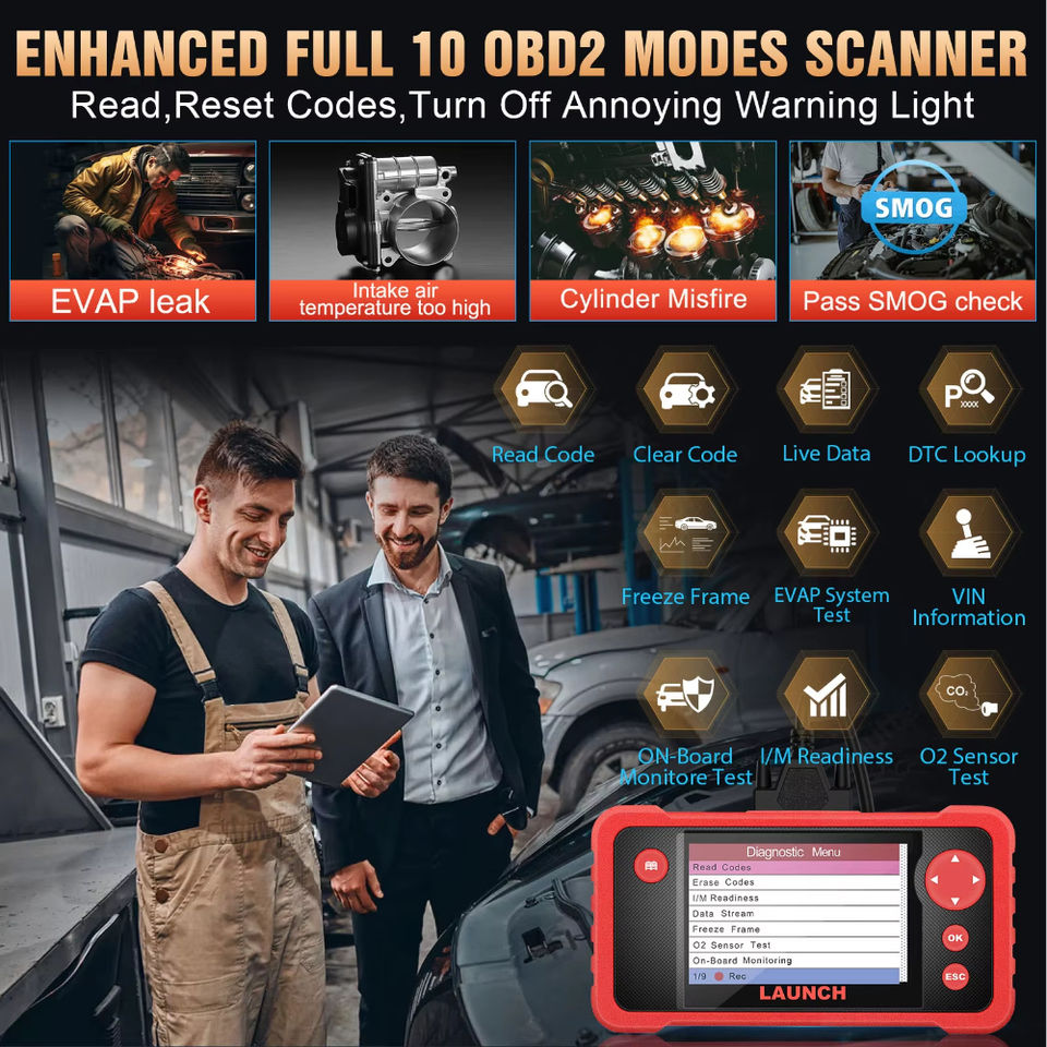 LAUNCH CRP123 PLUS ระบบวินิจฉัยเต็มรูปแบบ OBD2 มาตรฐาน 8 ฟังก์ชันรีเซ็ต ฟรีตลอดชีพ การซ่อมแซมขั้นพื้นฐาน การตรวจจับระดับมืออาชีพ