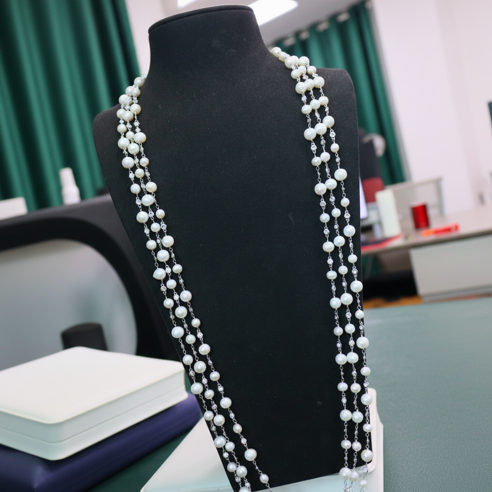 สร้อยคอไข่มุกเงินแท้ 925 ลาวีน่า ดีลิเคท ลักชัวรี ชุบโรเดียม ประดับเพชรซิร์คอนเป็นหินหลัก ความยาว 38 นิ้ว เครื่องประดับแฟชั่นสำหรับทุกเพศ