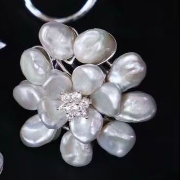แหวนเงินแท้สเตอร์ลิง LAVINA ดีไซน์หรูหรา ประดับเพชรซิร์คอนทรงเรเดียนท์คัท และไข่มุกบาโรก สำหรับทั้งชายและหญิง