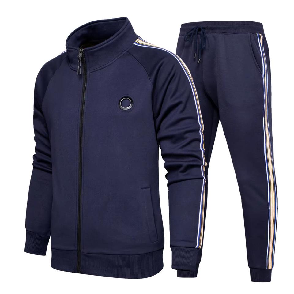 Layenne ชุดวอร์มสองชิ้นแนววินเทจของผู้ชายชุดวอร์มกางเกงจ๊อกกิ้งฤดูใบไม้ร่วงปักโลโก้ถัก100%