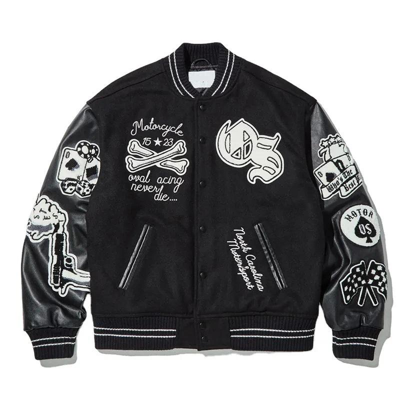 แจ็คเก็ตวาร์ซิตี้คุณภาพสูง LAYENNE สำหรับผู้ชาย ปักด้วยไหมเชนิลล์ แขนหนัง แจ็คเก็ตเบสบอลแบบกำหนดเอง แจ็คเก็ตวาร์ซิตี้ตัวอักษร