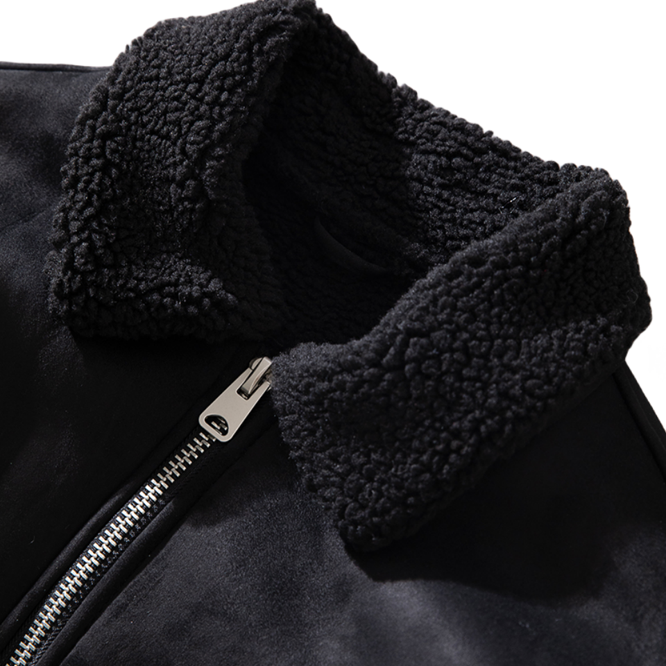 เสื้อโค้ทผู้ชาย LAYENNE ผ้าแคนวาสทออย่างดี ตกแต่งด้วยขนแกะ คอทรงโอ ติดกระดุมสองแถว ไซส์ใหญ่ กันน้ำ ลายสก็อต บุขนแกะ