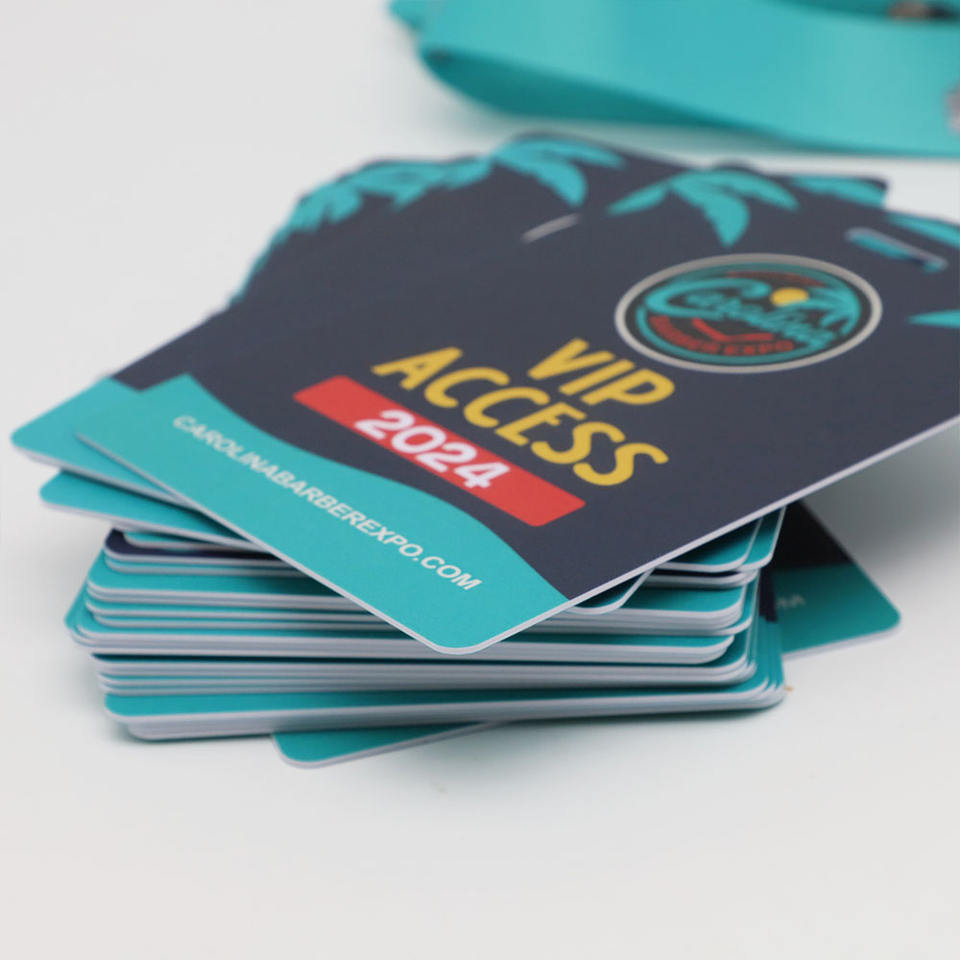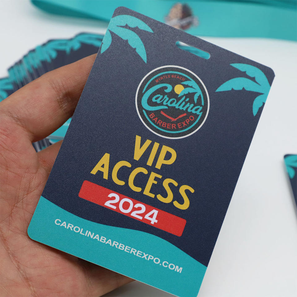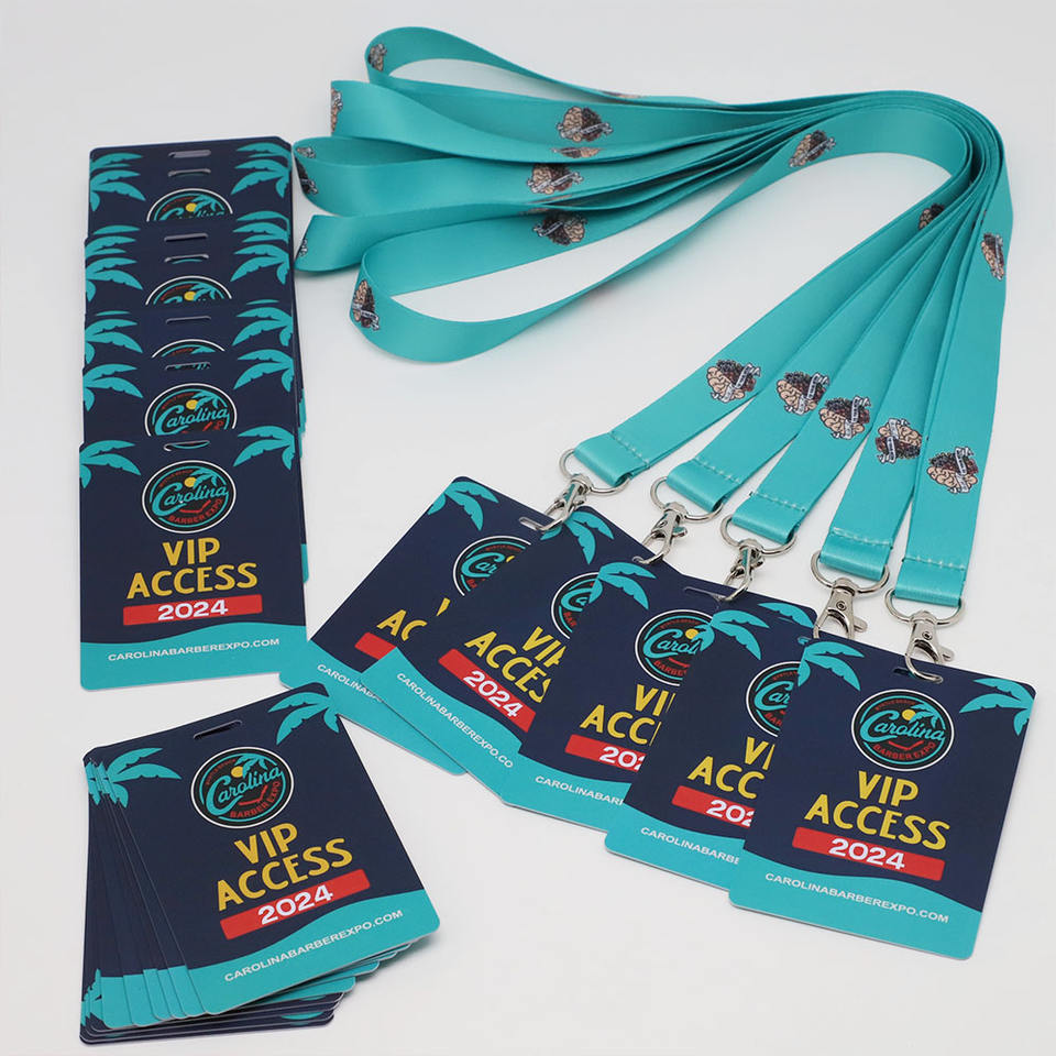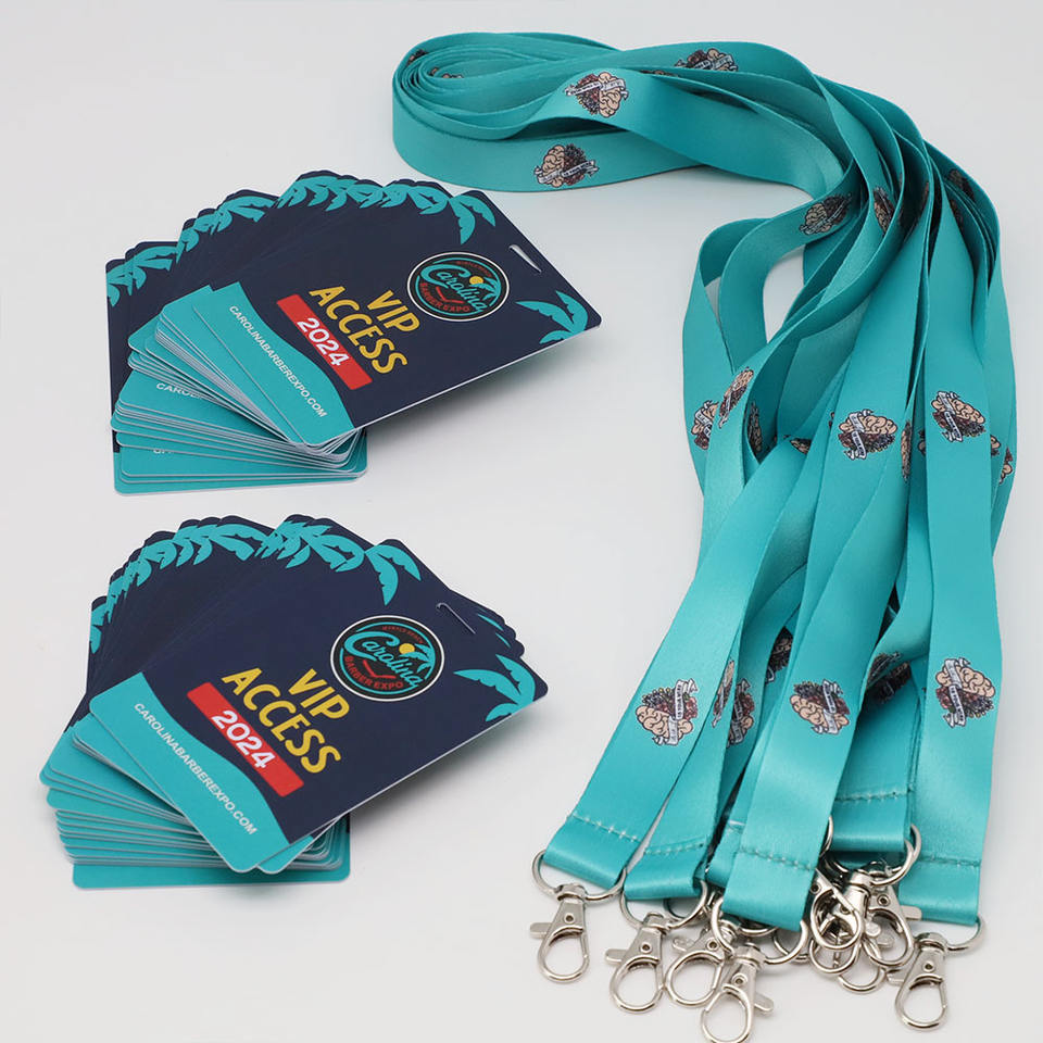 สายคล้องคอโพลีเอสเตอร์แบบกำหนดเอง LBR พร้อมพิมพ์สีเต็มรูปแบบ บัตร PVC สำหรับเข้างานประชุม