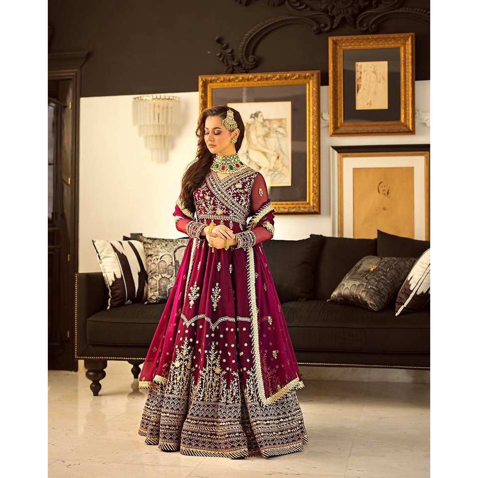 LC Designer Indian & Pakistani Anarkali Gown and Dupatta in Wine Color Free-Size for Party Wear Look