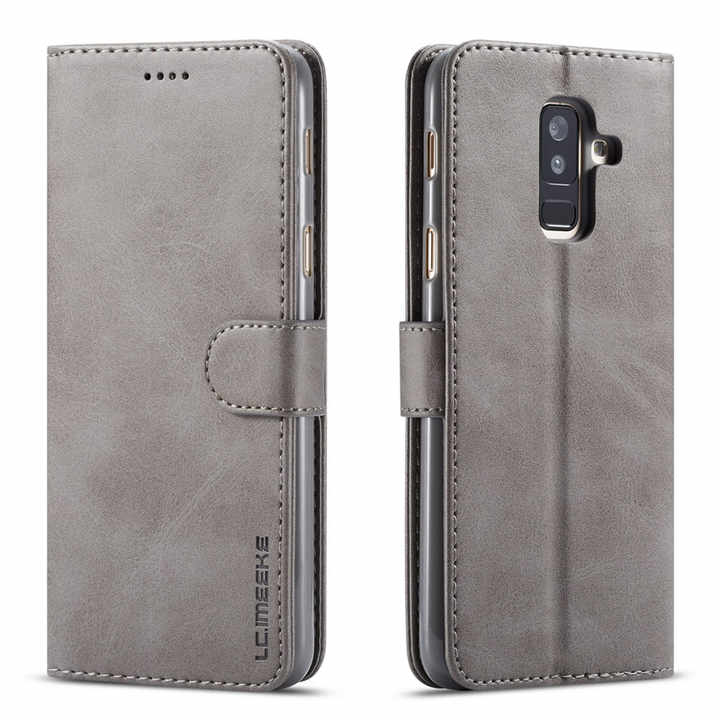 LC.imeeke Wallet case with Buckle for Samsung Galaxy A6/A6 Plus 2018 Flip Magnetic Flip Cover Phone Stand